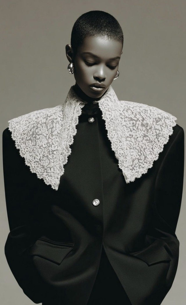 Pokazowy model kolekcji Wiosna/Lato 2026 i esencja estetyki Muse Studio. Rzeźbiarska forma, wyraziste ramiona oraz kontrastowa koronkowa stójka nadają tej marynarce couture’owy charakter, balansując między siłą a subtelnością. The Piece to manifest nowoczesnej klasyki - ikoniczny projekt, wokół którego zbudowana została cała kolekcja